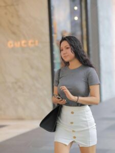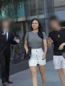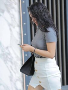 Beyond that, your outfit should be the key. European and American makeup often creates a fierce look, so opting for a cool and elegant style is a good option. A gray short-sleeved shirt paired with a white skirt and a pair of transparent high heels creates a clean, feminine look. Adding to her unique flair, she’s a truly stylish woman.