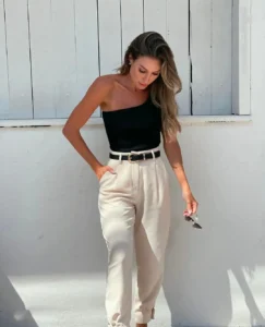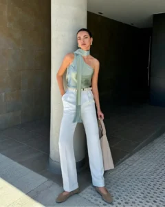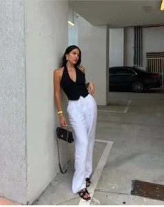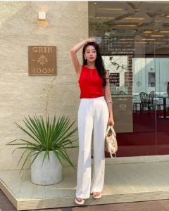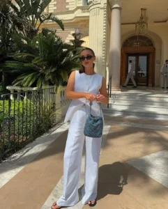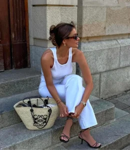 The tight-fitting “white vest + white pants” combination is the perfect way to show off your figure.